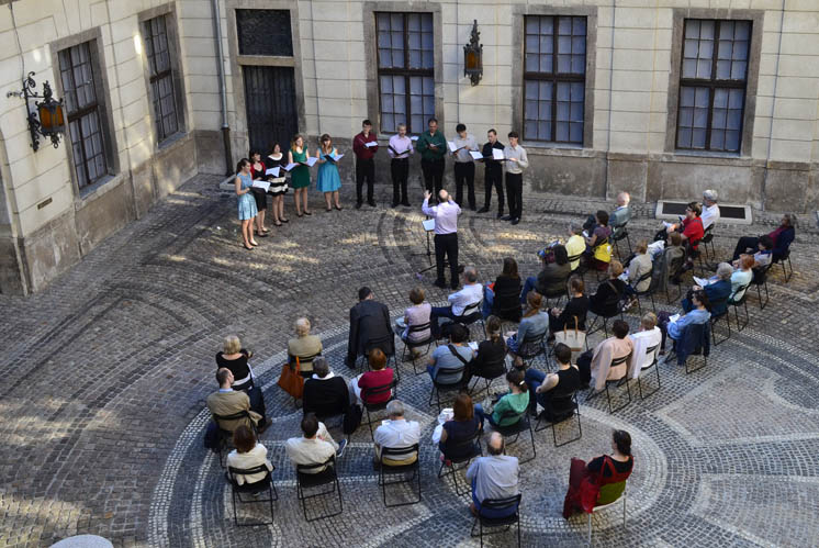 A Zenetörténeti Múzeum udvarán adtunk kellemes hangulatú nyári koncertet 2015. június 20-án, a Múzeumok Éjszakája programsorozat keretében, Arcadelt, Michelangelo Rossi, Schickele, Balogh Máté, Veress Sándor, Farkas Ferenc és mások műveiből (fotó: Szabó Ferenc János).